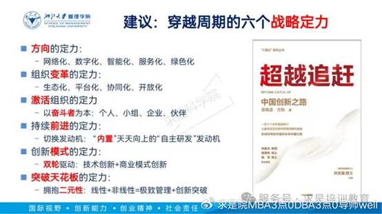 吴晓波教授分享了《力争上游、穿越周期》的精彩思想。吴院长及穿越周期的C理论,为众多因为企业寿命甚至百年传承等问题、深陷周期性甚至宿命困扰的企业找到了一个明确的方向,是对中国管理科学的重大贡献。揭示了企业对于创新驱动战略的内在要求与底层逻辑,对于企业健康成长具有历史性的重大意义。